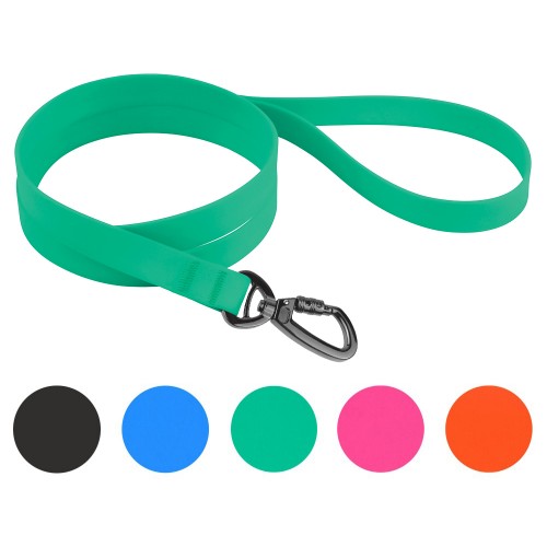 Погляньте на нашу нову серію водонепроникних повідців для собак у яскравих кольорах! Водонепроникні повідці для собак зроблені з нейлонової стрічки, покритої ПВХ (полівінілхлоридом). Цей матеріал має попит завдяки його довговічності і приголомшливим водовідштовхувальним властивостям. Ще одна перевага ПВХ полягає в тому, що він зовсім не вбирає води, бруду чи запахів. Водовідштовхуючий повідець комфортний в експлуатації і для вихованця, і для господаря. Також його дуже легко мити, так як можна робити це просто під проточною водою.