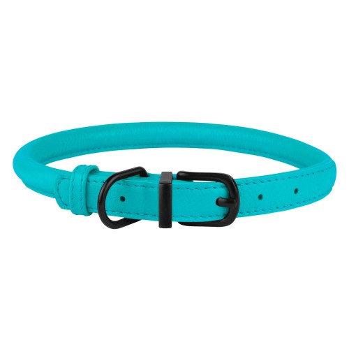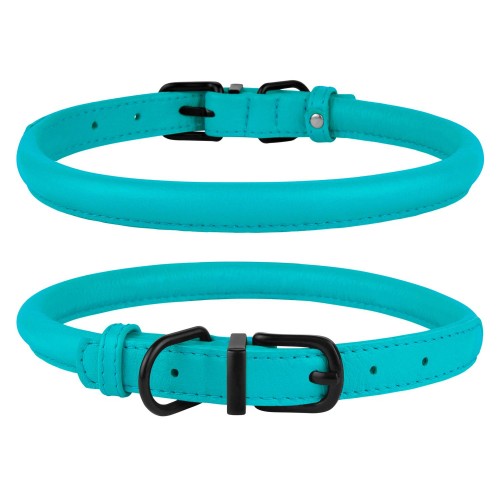 Нашийник для Собак Круглий Шкіряний BronzeDog Premium з Металевою Фурнітурою Блакитний L(00352/Т)