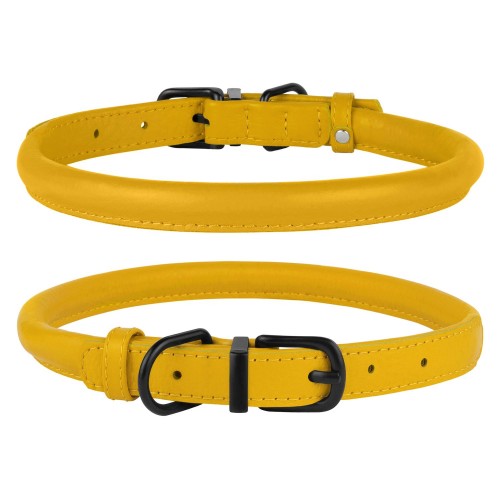 Нашийник для Собак Круглий Шкіряний BronzeDog Premium з Металевою Фурнітурою Гірчичний L(00358/Т)