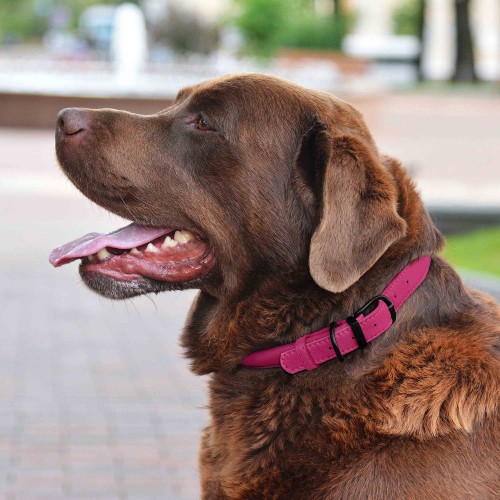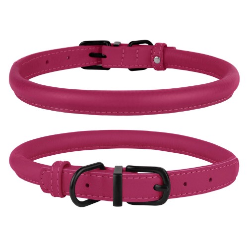 Нашийник для Собак Круглий Шкіряний BronzeDog Premium з Металевою Фурнітурою Рожевий XL(00367/Т)