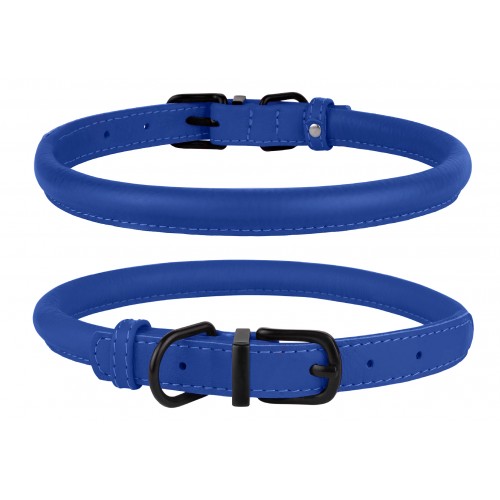Нашийник для Собак Круглий Шкіряний BronzeDog Premium з Металевою Фурнітурою Синій XL(003622/Т)