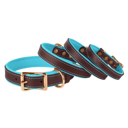 Нашийник для Собак Шкіряний BronzeDog Premium з Литою Латунною Фурнітурою та Адресником Коричнево-Блакитний S(62052/Т)