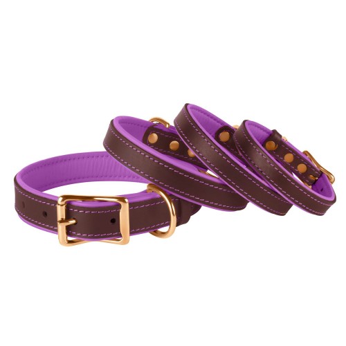 Нашийник для Собак Шкіряний BronzeDog Premium з Литою Латунною Фурнітурою та Адресником Коричнево-Фіолетовий XL(62089/Т)