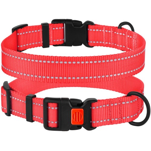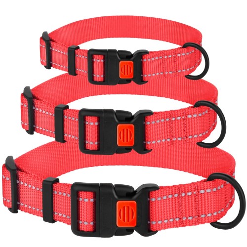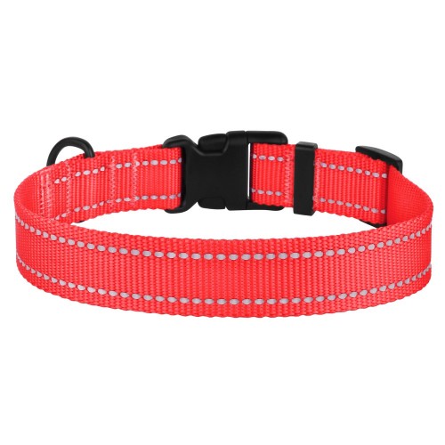 Нашийник для Собак BronzeDog Active Нейлоновий зі Світловідбиттям та Пластиковою Пряжкою Кораловий L(52/1224/Т)