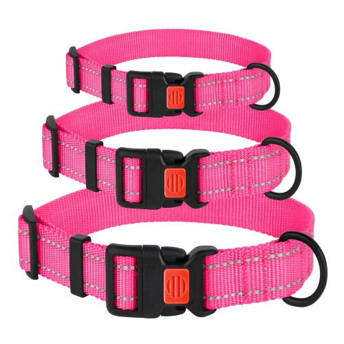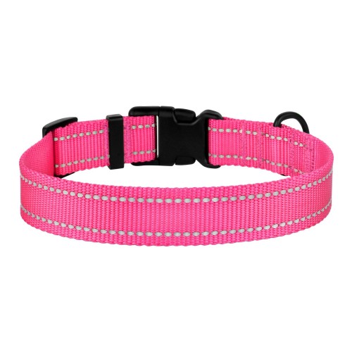 Нашийник для Собак BronzeDog Active Нейлоновий зі Світловідбиттям та Пластиковою Пряжкою Рожевий L(52/1306/Т)